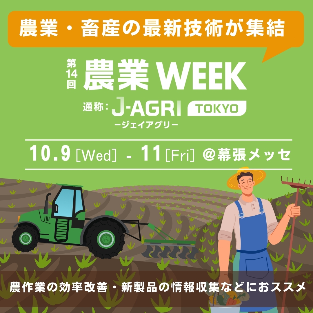 2024年10月9日(水)から10月11日(金)の3日間、幕張メッセにて開催される「第14回農業WEEK」に出展いたします。